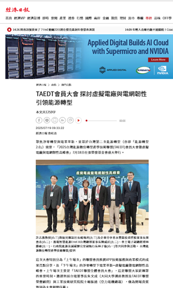 2. 經濟日報--TAEDT會員大會探討虛擬電廠與電網韌性,引領能源轉型。