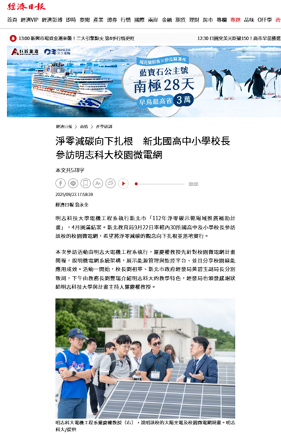 《TAEDT聯盟協辦活動媒體報導》新北校長參訪明志科大校園微電網示範場域 推動淨零教育向下扎根